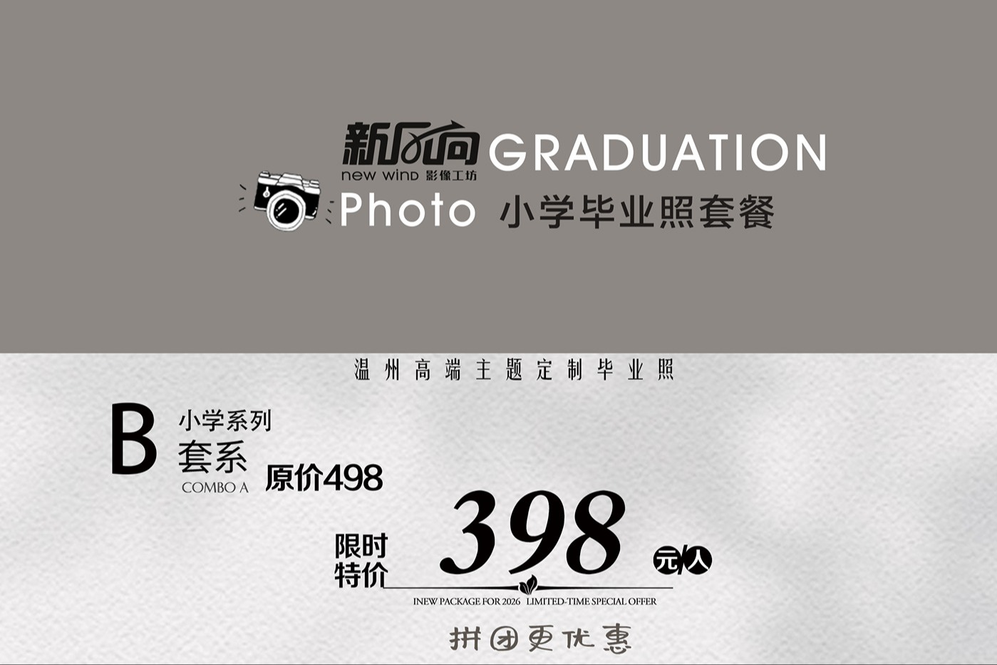 【拍摄服务】 可拍摄2次(一次半天) 提供主题服2套 【贴心服务】 1、专业摄影师一对一服务 2、按组轮流拍摄 3、校园拍摄+外景任选 【尊贵享受】 80张精修片、方12寸(25x25cm)相册一本、入册80张底片(13p精修时尚设计) 送老师相册2本 送全部拍摄底片 送校园视频拍摄一次(成片3-5分钟)